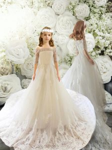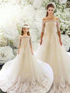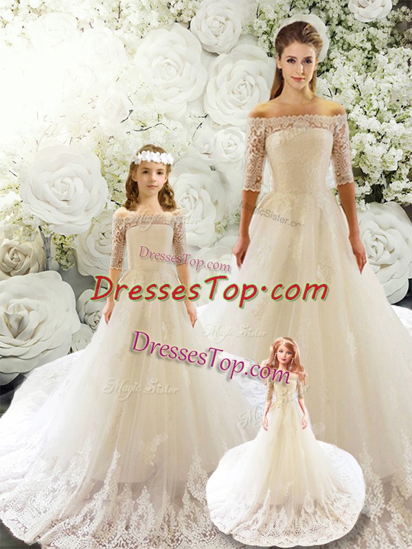 New Style Half Sleeves Court Train Lace Lace Up Quinceanera Dresses