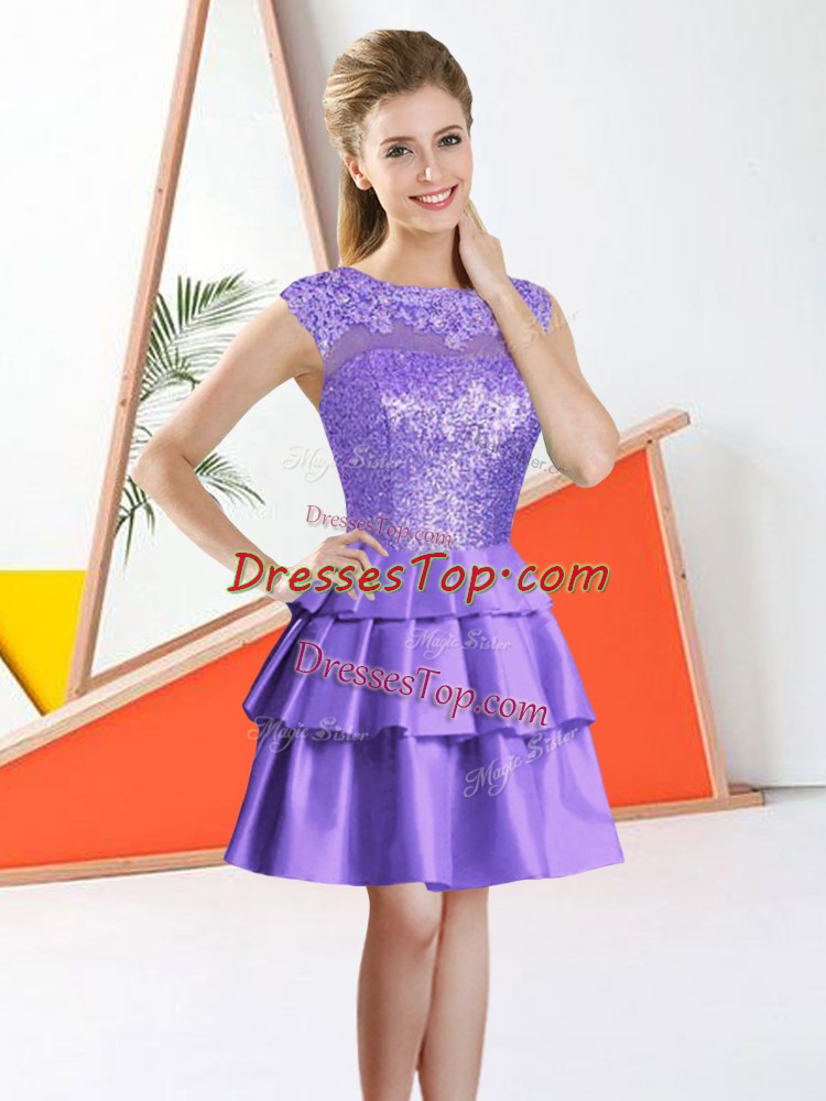New Style Lavender A-line Beading and Lace Quinceanera Court Dresses Backless Taffeta Sleeveless Knee Length