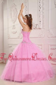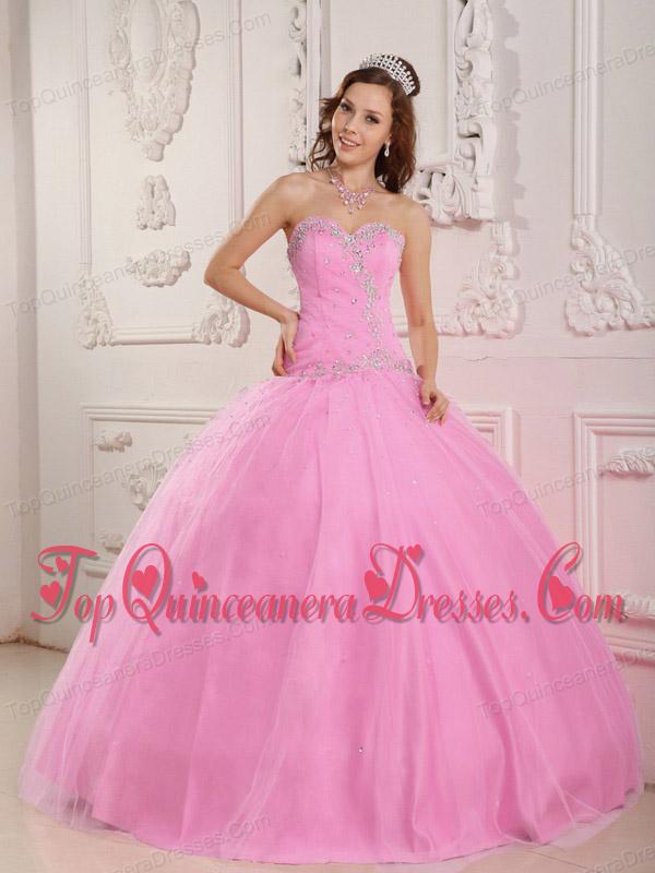 New Style Lovely Ball Gown Sweetheart Floor-length Tulle Appliques Pink Quinceanera Dress