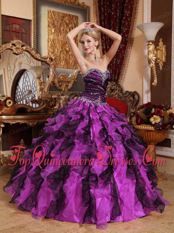 New Style Purple and Black Sweetheart Organza Beading and Ruffles Quinceanera Dress