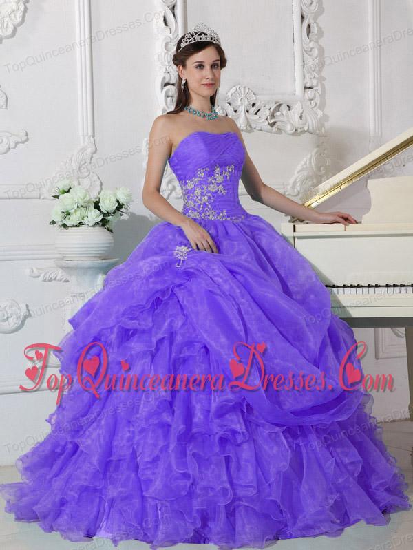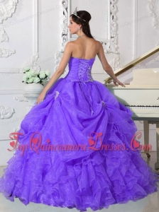 New Style Purple Ball Gown Strapless Floor-length Organza Beading Quinceanera Dress