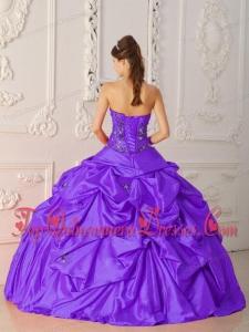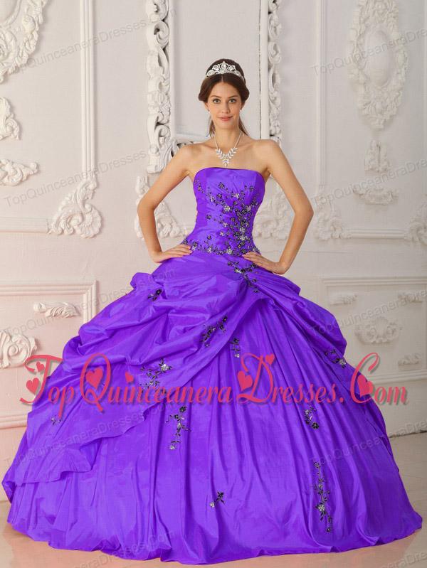 New Style Purple Ball Gown Strapless Floor-length Taffeta Appliques Quinceanera Dress