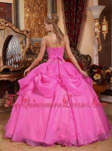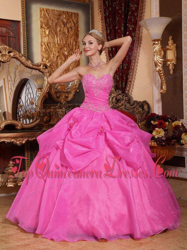 New Style Rose Pink Ball Gown Sweetheart Floor-length Taffeta and Organza Appliques Quinceanera Dress