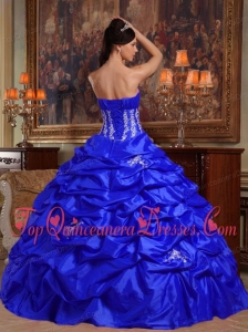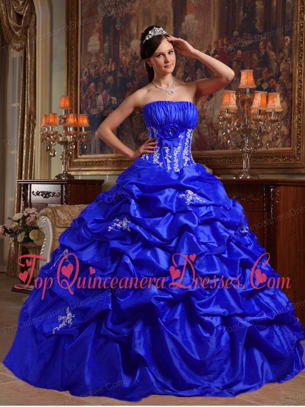 New Style Royal Blue Ball Gown Strapless Floor-length Appliques Taffeta Quinceanera Dress