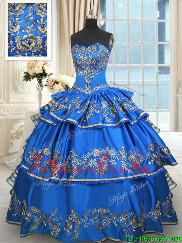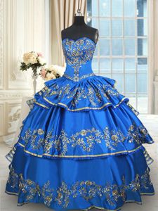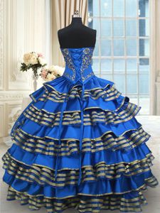 New Style Ruffled Blue Sleeveless Taffeta Lace Up Quinceanera Dress for Military Ball and Sweet 16 and Quinceanera