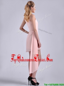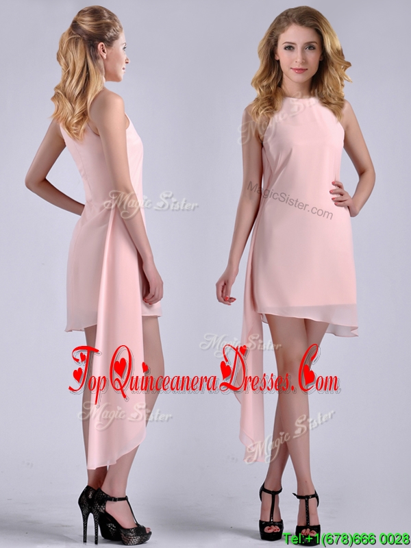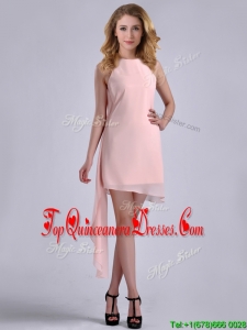 New Style Scoop Empire Chiffon Asymmetrical Dama Dress in Baby Pink
