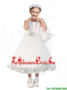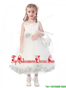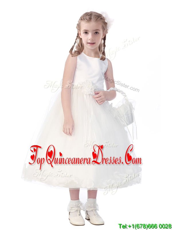 New Style Scoop Hand Made Flowers and Appliques Mini Quinceanera Dress in White