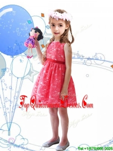 New Style Scoop Sashes and Lace Mini Quinceanera Dress in Coral Red