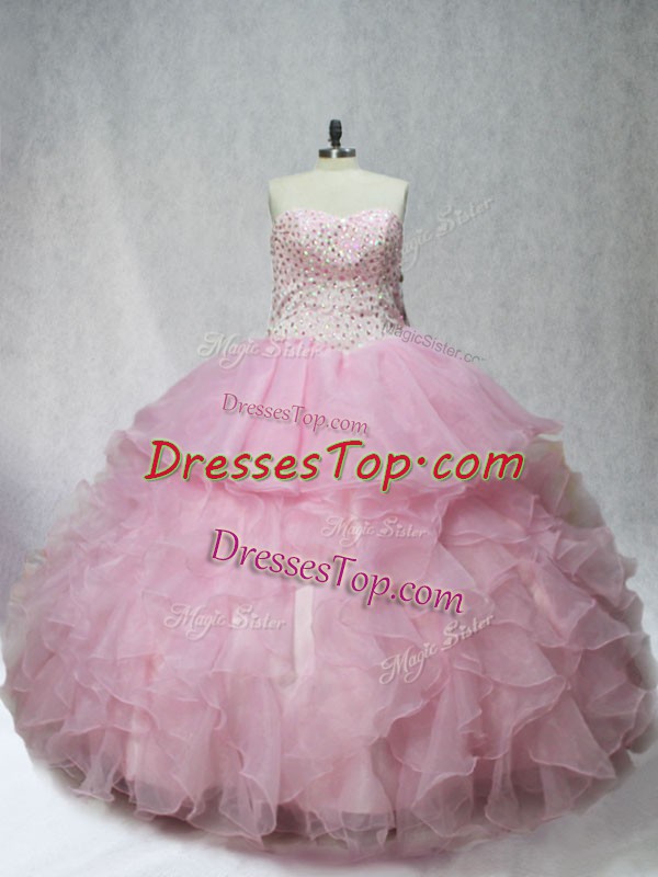 New Style Sleeveless Beading and Ruffles Lace Up Sweet 16 Dress