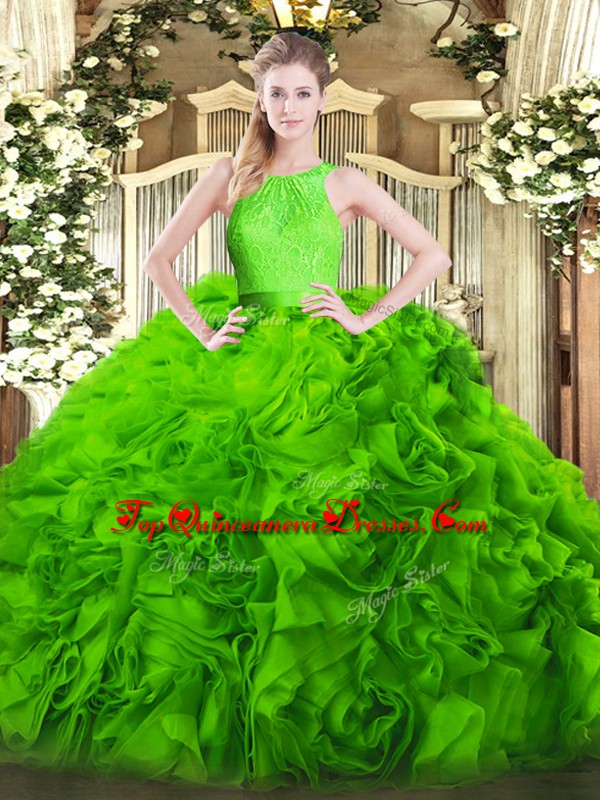 New Style Sleeveless Fabric With Rolling Flowers Floor Length Zipper Quinceanera Gowns in with Lace