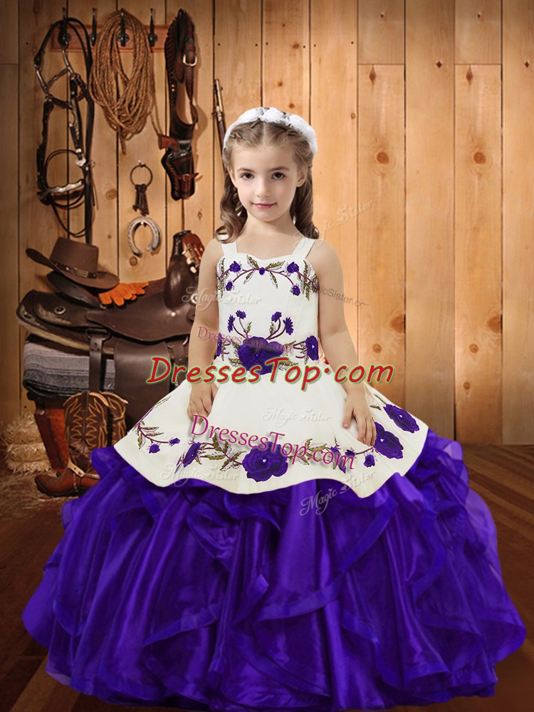 New Style Straps Sleeveless Lace Up Girls Pageant Dresses Purple Organza