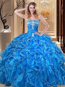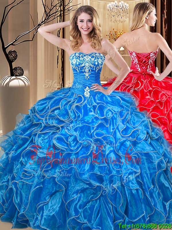 New Style Sweetheart Sleeveless Lace Up Vestidos de Quinceanera Blue Organza