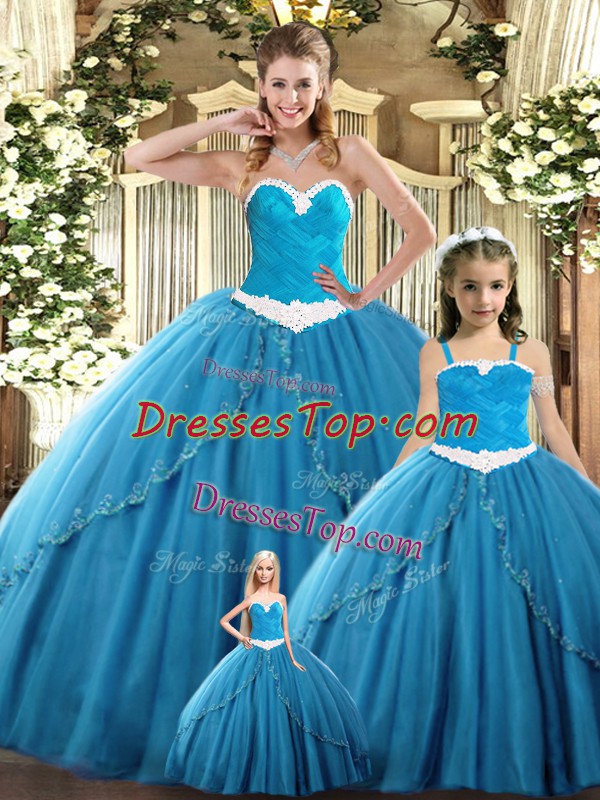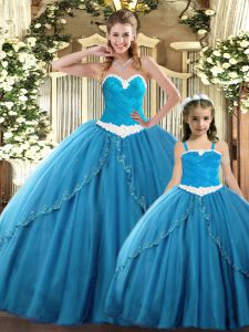New Style Sweetheart Sleeveless Sweet 16 Dresses Floor Length Ruching Teal Tulle