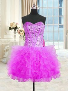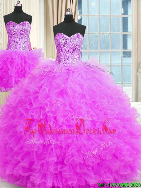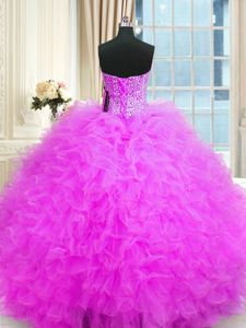 New Style Three Piece Floor Length Lilac Quinceanera Dress Tulle Sleeveless Beading and Ruffles