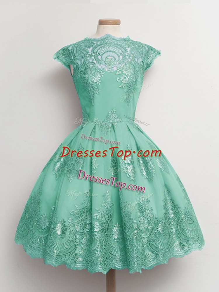 New Style Turquoise Cap Sleeves Tulle Lace Up Vestidos de Damas for Prom and Party and Wedding Party