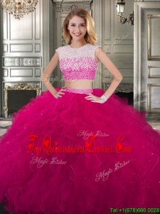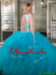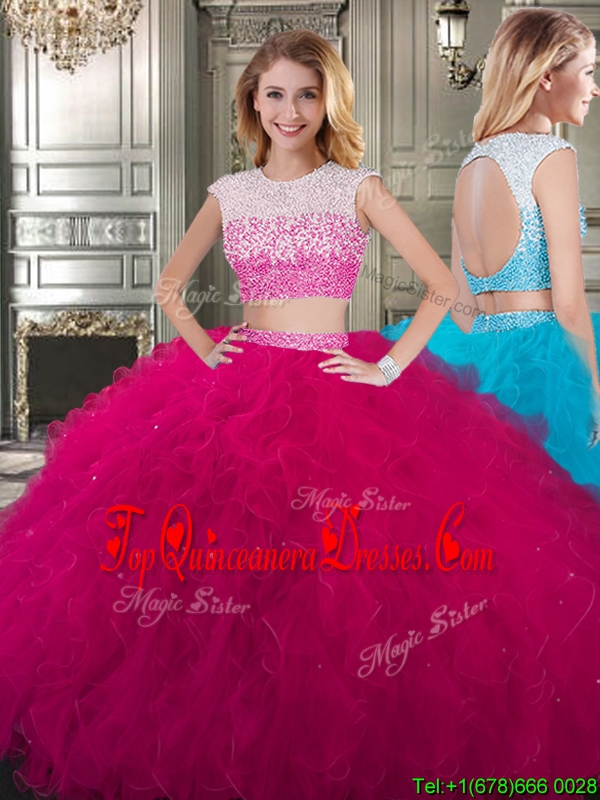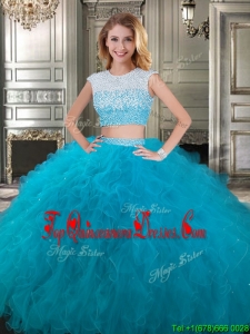 New Style Two Piece Scoop Cap Sleeves Quinceanera Dress with Beading and Ruffles