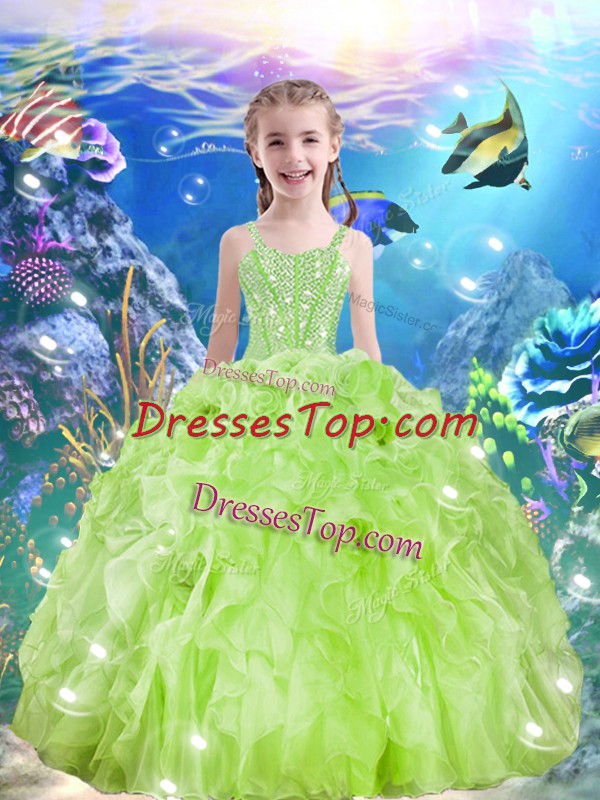New Style Yellow Green Ball Gowns Beading and Ruffles Little Girls Pageant Gowns Lace Up Organza Sleeveless Floor Length