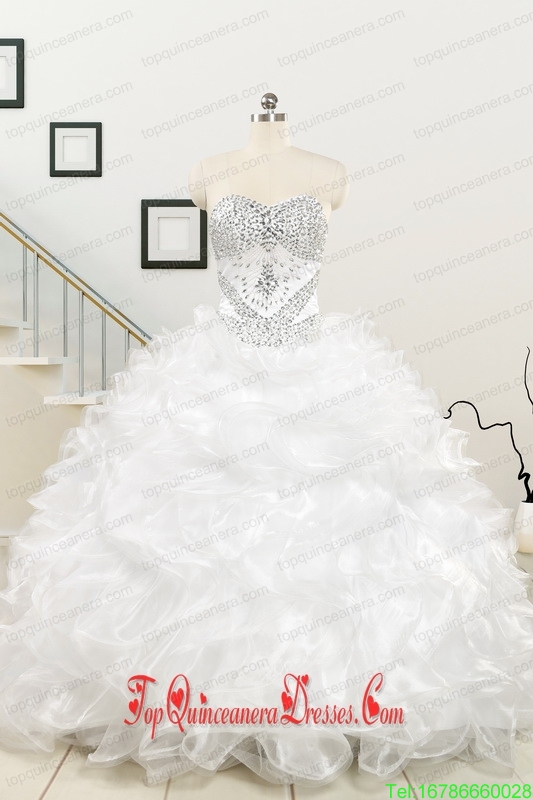 New Sweetheart Sweep Train Beading and Ruffles Quinceanera Dress for 2015