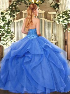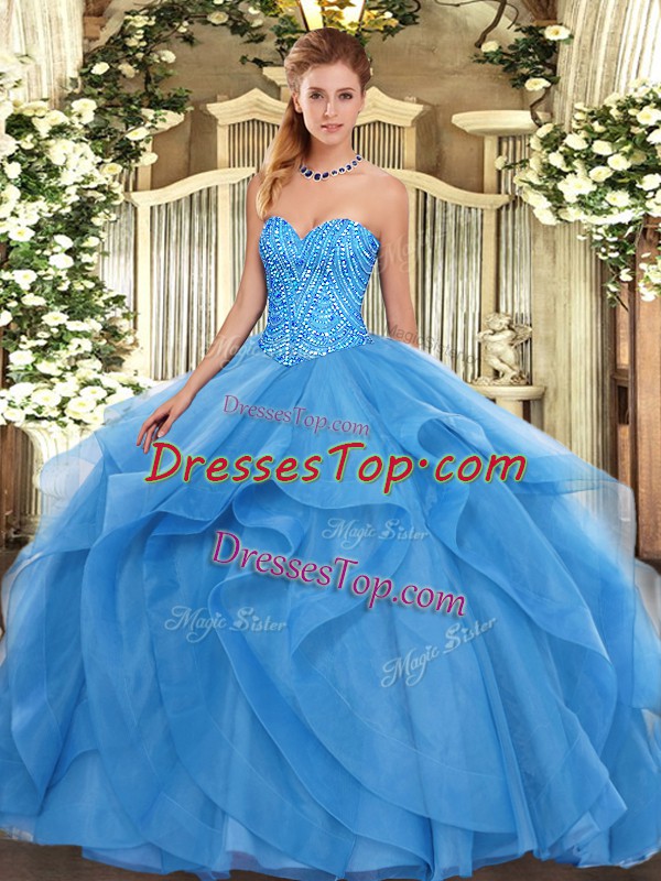 Nice Baby Blue Tulle Lace Up Sweetheart Sleeveless Floor Length Quinceanera Dresses Beading and Ruffles