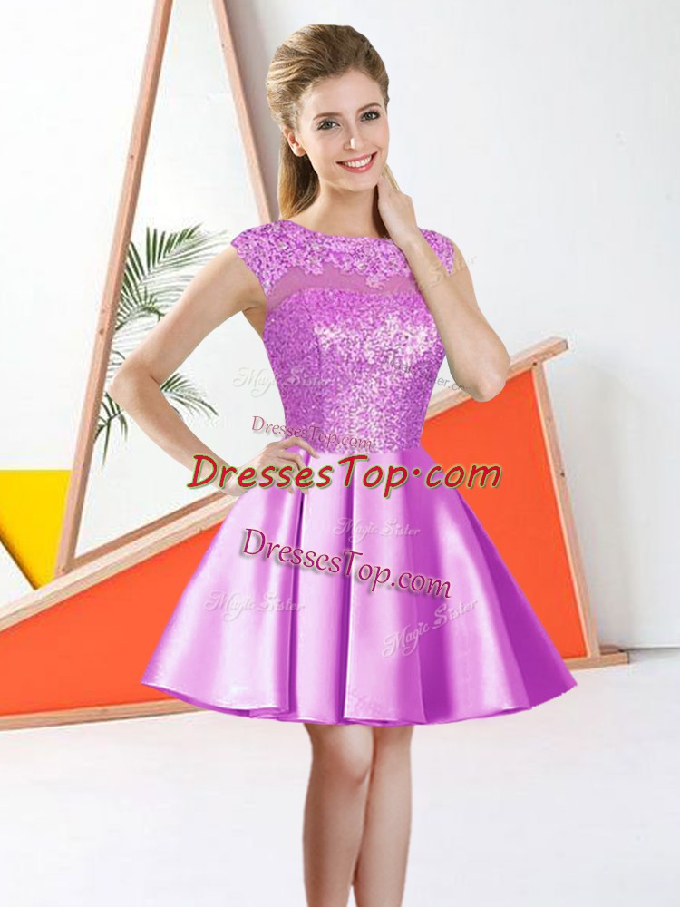 Nice Bateau Sleeveless Dama Dress for Quinceanera Knee Length Beading and Lace Lilac Taffeta