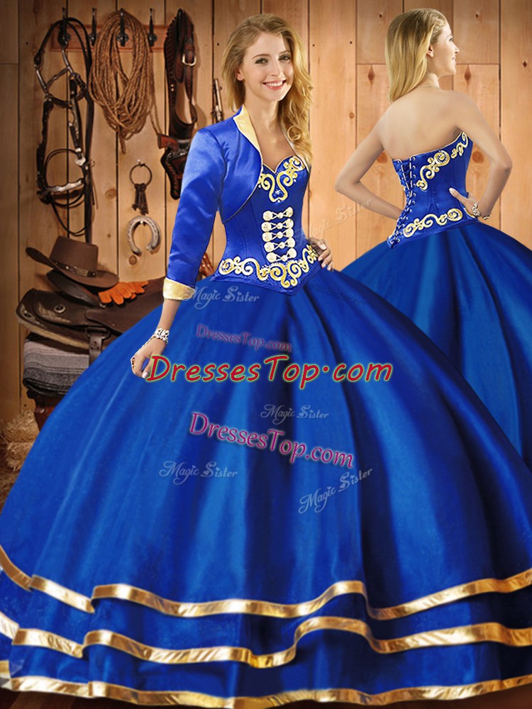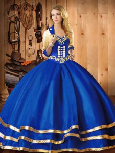 Nice Blue Sleeveless Embroidery Floor Length Vestidos de Quinceanera