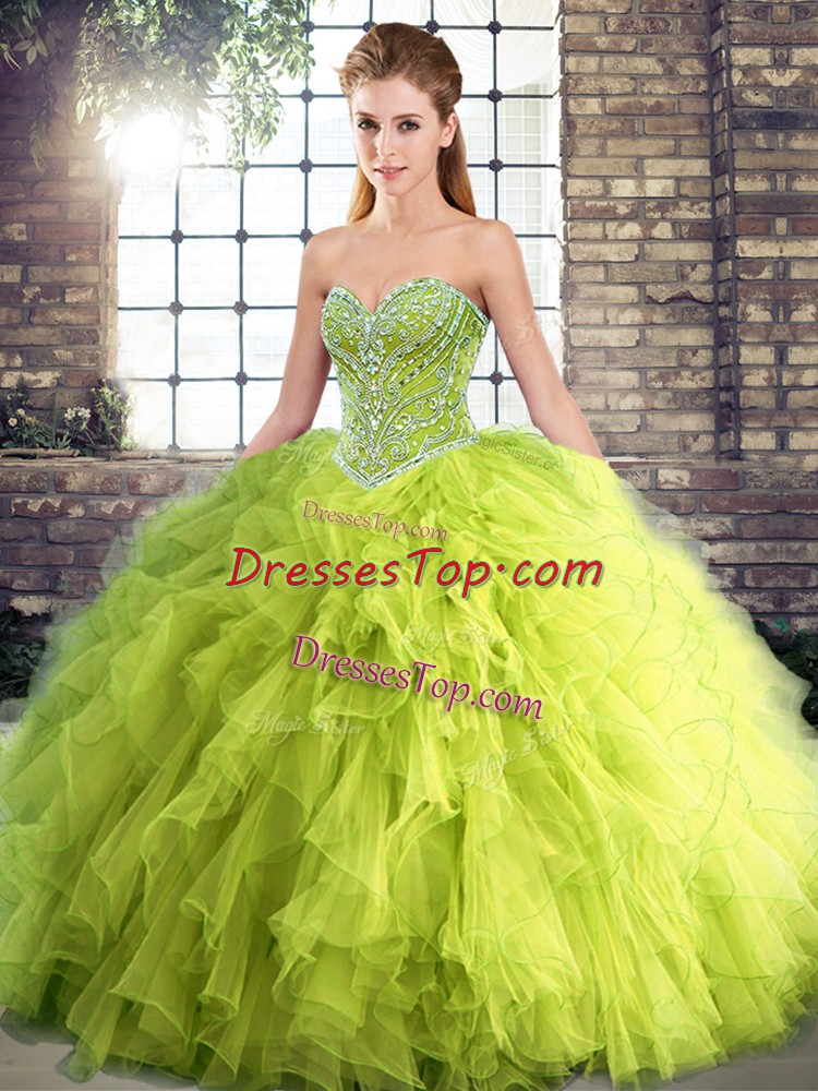 Nice Floor Length Ball Gowns Sleeveless Yellow Green Sweet 16 Quinceanera Dress Lace Up