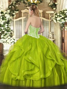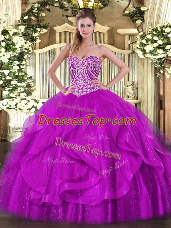 Nice Fuchsia Lace Up Vestidos de Quinceanera Beading and Ruffles Sleeveless Floor Length