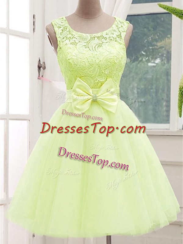 Nice Knee Length Yellow Green Quinceanera Court of Honor Dress Scoop Sleeveless Lace Up