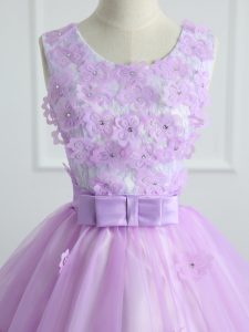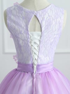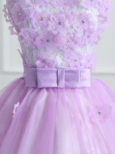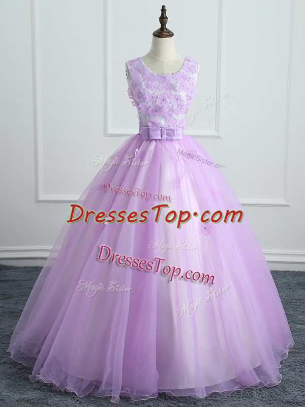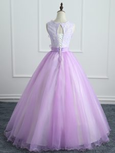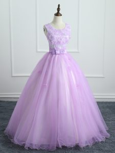 Nice Sleeveless Lace Up Floor Length Lace and Appliques and Bowknot Quince Ball Gowns