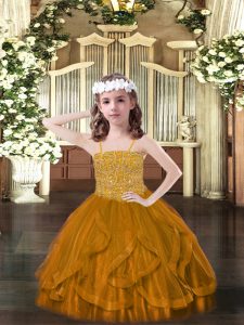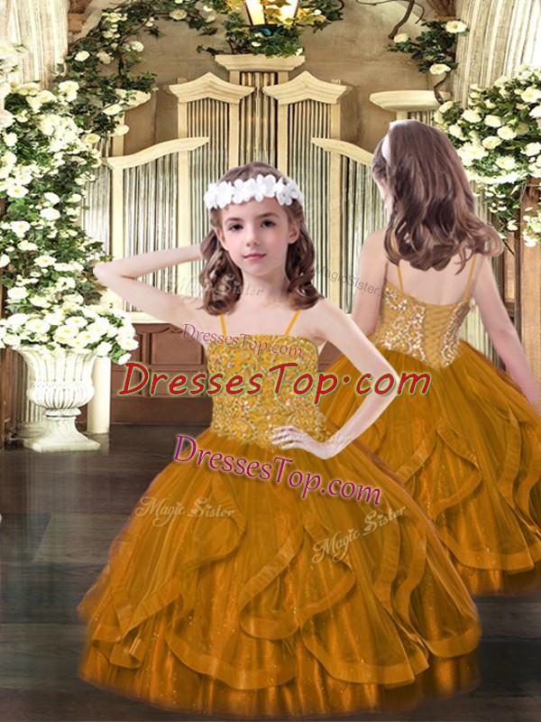 Nice Spaghetti Straps Sleeveless Tulle Little Girls Pageant Dress Wholesale Beading and Ruffles Lace Up