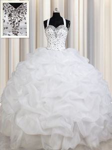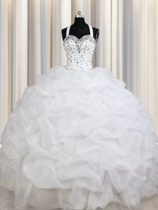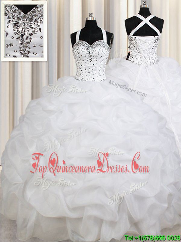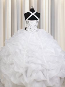 Nice Straps Straps White Lace Up Quinceanera Gowns Beading and Ruffles and Pick Ups Sleeveless Floor Length
