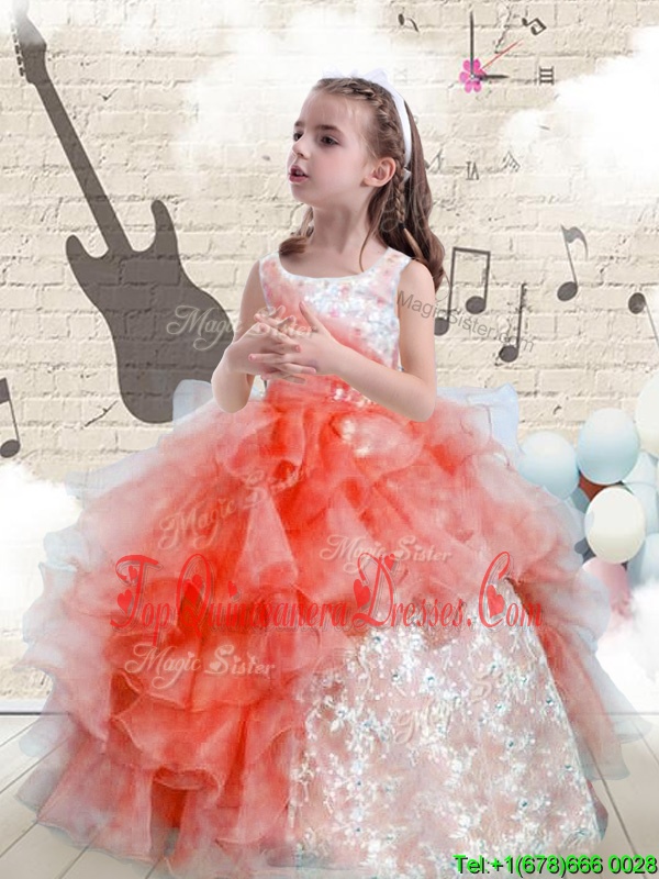 Nice Watermelon Red Organza Lace Up Scoop Sleeveless Floor Length Pageant Gowns For Girls Beading and Ruffles