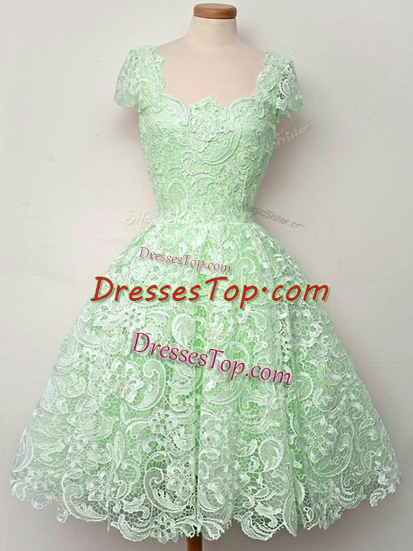 Noble Apple Green Lace Lace Up Quinceanera Dama Dress Cap Sleeves Knee Length Lace