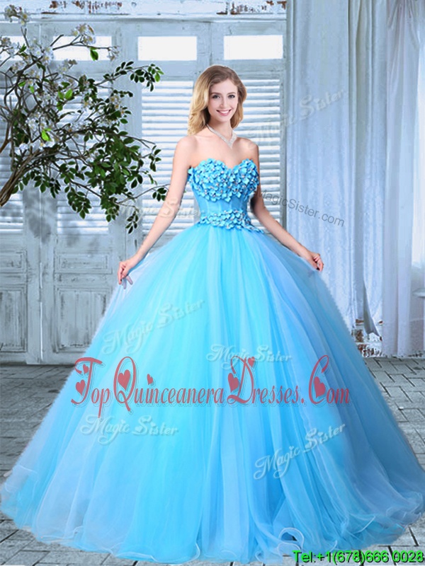 Noble Baby Blue Sweetheart Lace Up Appliques Quinceanera Dress Sleeveless