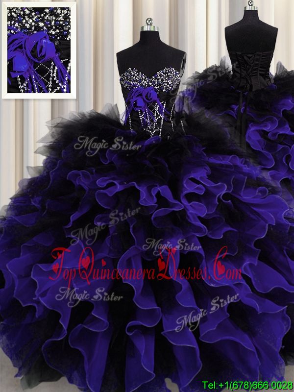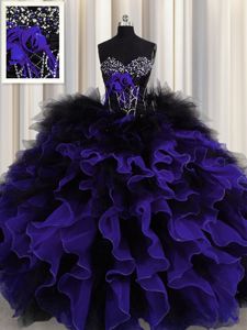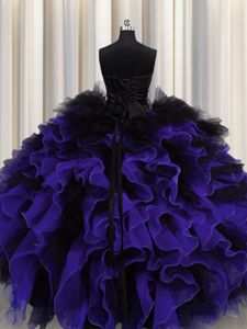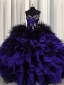 Noble Black And Purple Sleeveless Floor Length Beading and Ruffles Lace Up Quince Ball Gowns