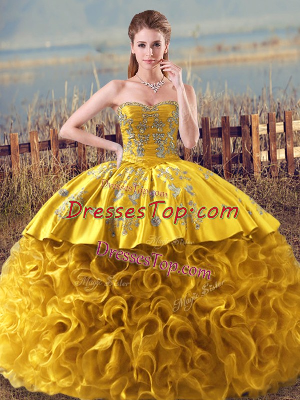 Noble Embroidery and Ruffles Sweet 16 Dresses Gold Lace Up Sleeveless Floor Length