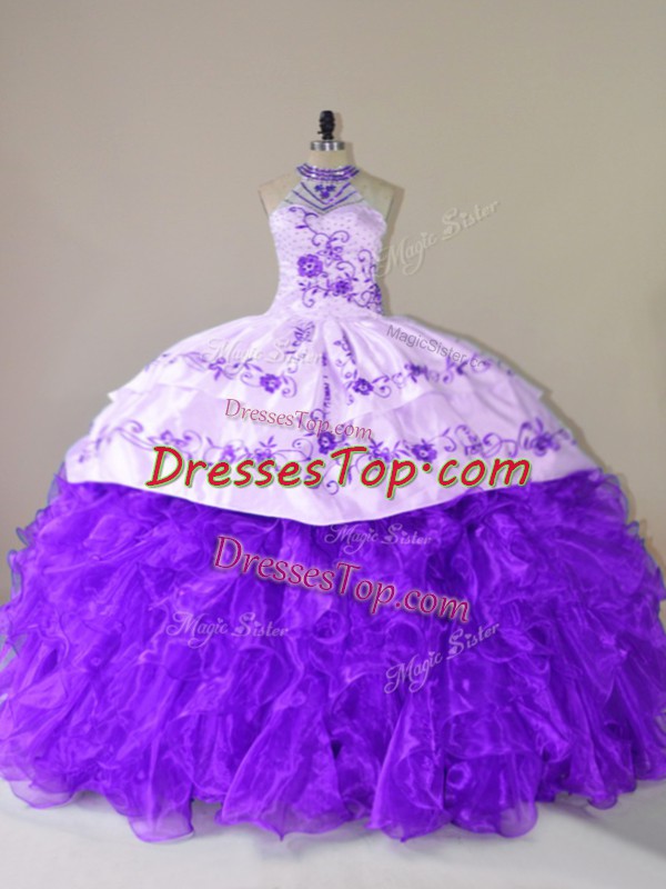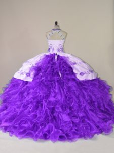 Noble Embroidery and Ruffles Vestidos de Quinceanera Purple Lace Up Sleeveless Court Train