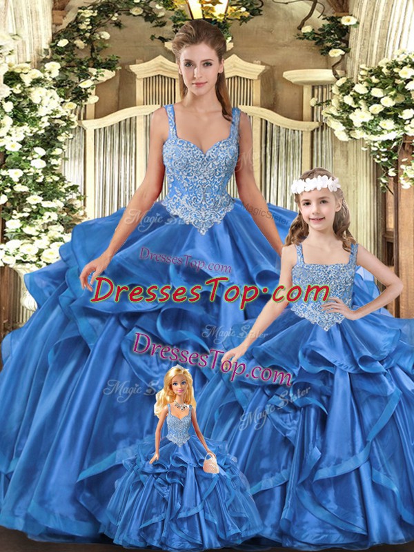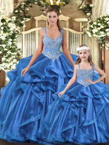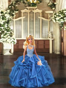 Noble Floor Length Ball Gowns Sleeveless Blue 15th Birthday Dress Lace Up