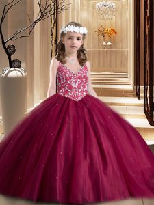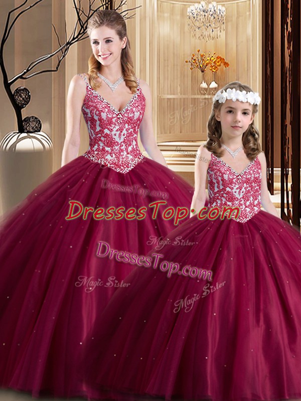 Noble Floor Length Lace Up 15 Quinceanera Dress Wine Red for Military Ball and Sweet 16 and Quinceanera with Lace