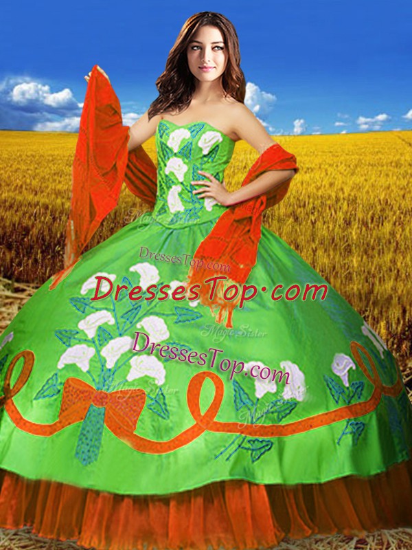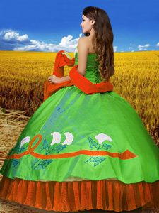 Noble Floor Length Lace Up Sweet 16 Dress Multi-color for Military Ball and Sweet 16 and Quinceanera with Embroidery
