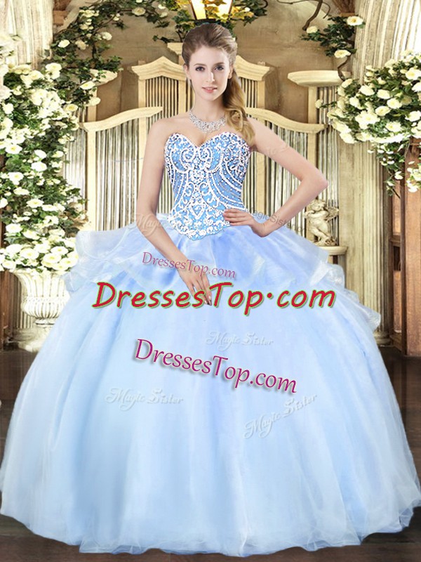 Noble Floor Length Light Blue Quince Ball Gowns Sweetheart Sleeveless Lace Up
