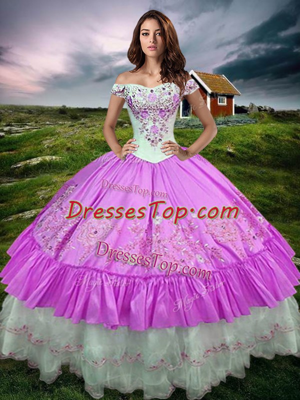 Noble Floor Length Lilac Ball Gown Prom Dress Off The Shoulder Sleeveless Lace Up