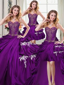Noble Four Piece Taffeta Sleeveless Floor Length 15th Birthday Dress and Beading and Appliques and Pick Ups