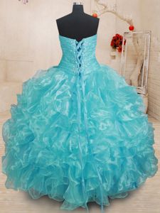 Noble Halter Top See Through Beading and Appliques Sweet 16 Dresses Blue Lace Up Sleeveless Floor Length