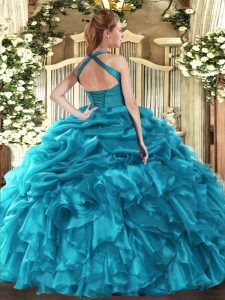 Noble Halter Top Sleeveless Organza Sweet 16 Quinceanera Dress Ruffles and Pick Ups Lace Up