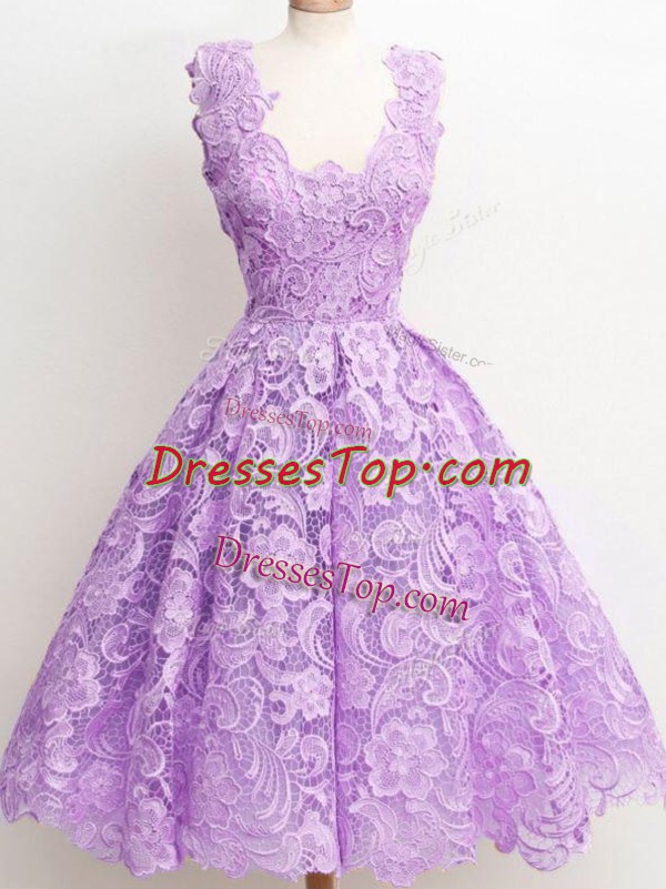 Noble Knee Length A-line Sleeveless Lavender Court Dresses for Sweet 16 Zipper