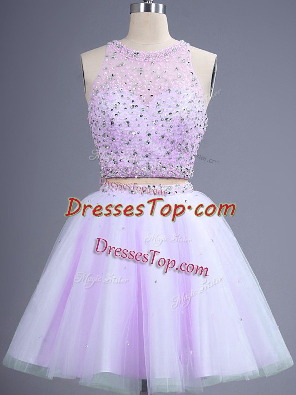 Noble Knee Length Lavender Court Dresses for Sweet 16 Tulle Sleeveless Beading