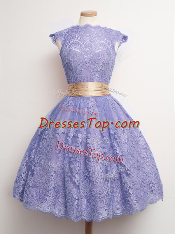 Noble Lavender Cap Sleeves Lace Lace Up Quinceanera Court of Honor Dress for Prom and Party and Wedding Party