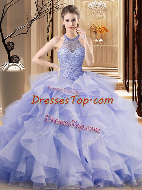 Noble Lavender Lace Up Quinceanera Dresses Ruffles Sleeveless Brush Train