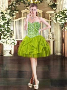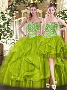 Noble Olive Green Quinceanera Dresses Military Ball and Sweet 16 and Quinceanera with Beading and Ruffles Sweetheart Sleeveless Lace Up